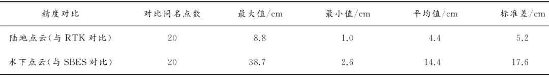 8 K% ^1 @7 p& y5 g3 u2 X 表5 ALB水上水下点云成果精度对比  M3 ~+ P: X& V' [( z( c+ T