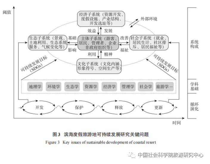$ y6 Z; q+ a; W6 g8 `4 _  (2)滨海度假旅游地复杂旅游地域系统演化与适应性治理研究。传统滨海度假旅游地以追求经济增长为主要目标,沿海城镇化和旅游业发展对海岸带生态环境造成了不同程度的影响,景观碎片化导致区域生态风险不断提高,系统脆弱性增强。展望未来,应基于不同情境下经济、社会、生态、文化、主体等子系统协调发展视角综合考虑子系统与目的地发展演化之间的复杂关系,衡量滨海度假旅游地自然资源承载力与环境效应,增强系统适应性,构建具有时代和区域特色的新型可持续发展模式,提升游客满意度和居民幸福感与健康福祉。此外,还要积极探索多维空间视角下度假地物质空间、社会空间、文化空间生产与重构,研究多维空间系统演化的动态性、融合性、建构性,丰富滨海度假旅游地非物质空间与文化研究,总结中国特色滨海度假旅游文化内涵,这既是当前行业实践的紧迫要求,也是该领域的重要研究方向。(3)复杂内外源压力下滨海度假产业风险管理与韧性提升研究。近年来,气候变化与气象灾害、新冠肺炎疫情、战争冲突等不安全因素导致世界局势日益复杂,国际旅游业受到巨大冲击,推动了全球旅游产业布局和市场新格局的形成。与此同时,中国度假旅游市场持续增长,各地建设国家级度假区和世界级度假区热情高涨。“需求”决定“供给”,结合海岸带综合管理(ICZM)和可持续发展战略,探索度假地产业布局、功能定位、产品优化、品牌形象、空间治理等内容,加强多重压力因子扰动下滨海度假旅游产业经济发展风险管理和韧性提升研究,丰富中国滨海度假旅游产业经济发展实证分析,对于促进目的地高质量发展,推动本土化研究引领国际滨海度假旅游地研究具有重要的理论和实践意义。(4)多学科交叉融合,大数据、新方法、新技术的应用研究。滨海度假旅游地是一个综合性研究领域,应加强旅游学、生态学、地理学、资源学、经济学、海洋学、计算机科学等多学科理论、方法交叉融合研究。借助人地关系地域系统理论、演化经济地理学理论、景观生态学理论、可持续发展理论、复杂网络理论等,结合联合国可持续发展目标(SDGs),丰富滨海度假旅游地可持续发展与人类福祉提升等研究;利用大数据、人工智能、计算机模拟等复杂性研究的数据挖掘与分析技术,识别发展风险,加强海岸带景观资源保护与环境风险管理;丰富全球-国家-区域-城乡-目的地等不同尺度下滨海度假旅游地发展规律的对比研究,提出中国建设世界级滨海度假旅游胜地的新机制、新路径、新方向,科学引导实践发展。 作者:高彩霞,中国科学院地理科学与资源研究所;刘家明,中国社会科学院旅游研究中心特约研究员,中国科学院地理科学与资源研究所研究员;夏四友,朱鹤,李凤娇,中国科学院地理科学与资源研究所原文刊载于《资源科学》2022年第9期,注释及参考文献略注:转载请注明作者及出处 , W- Z/ ]* F. R9 J( \
