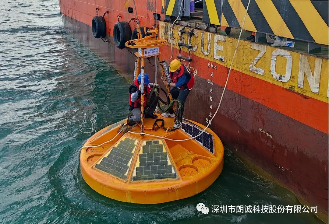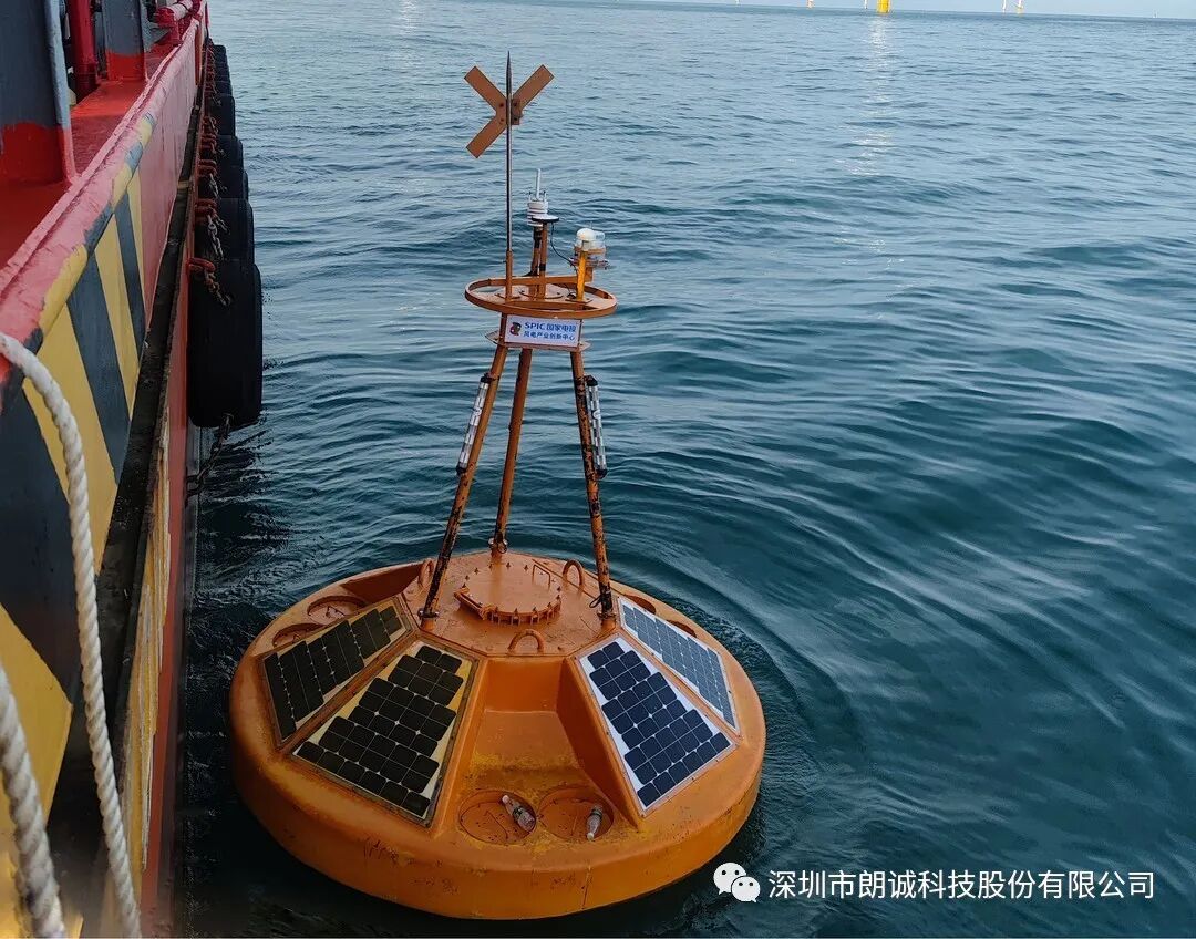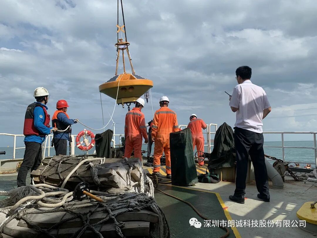 ; N8 P6 h$ @5 l! V m! G, x 2021年7月31日下午,在国家电投集团的配合下,深圳市朗诚科技股份有限公司(下称“朗诚科技”)在广东省湛江市徐闻海域成功完成了国家电投集团湛江徐闻海上风电项目海洋水文气象实时在线观测系统浮标的布放工作。通过现场采集海洋水文气象数据并实时传输到指挥系统,为海上风电场安装施工提供海洋水文气象观测服务,有力地保障了风电场施工及运营安全。 9 r) z& s" n) L$ i