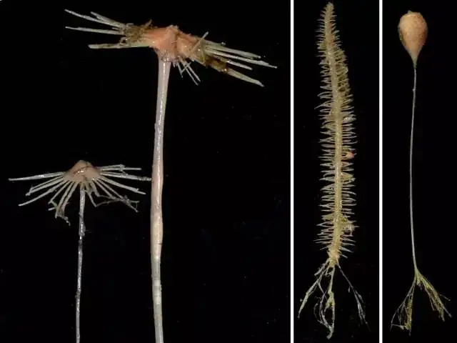 ) N5 D: ]8 G9 h& _0 F 这些长得像狼牙棒一样的硅质海绵通过其周身的硅质针捕获猎物,一但猎物被捕获,就会被迅速消化掉。