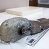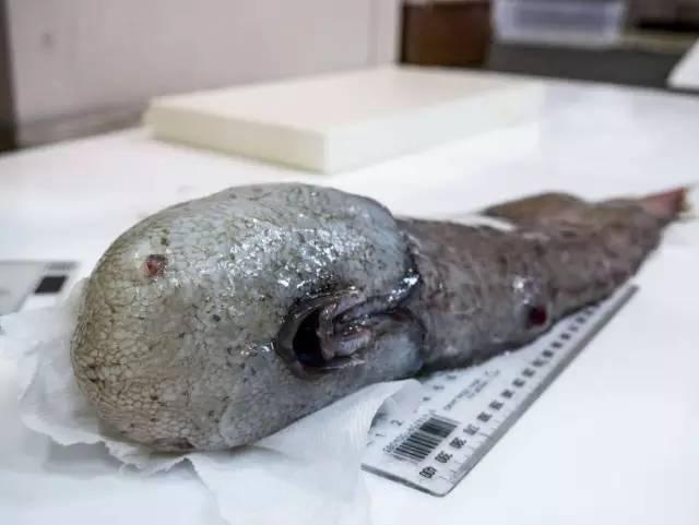 由于深海中漆黑一片,几乎什么也看不见,很多生物的眼睛都渐渐退化。但没想到,这种鱼不仅不要眼睛,干脆连脸也不要了……据官方介绍,这种无脸鱼是鼬鱼的一种,在4000米深的水下被捕获。【但是为什么我看了觉得好好吃呢,简直就是一大块鳕鱼肉啊!】