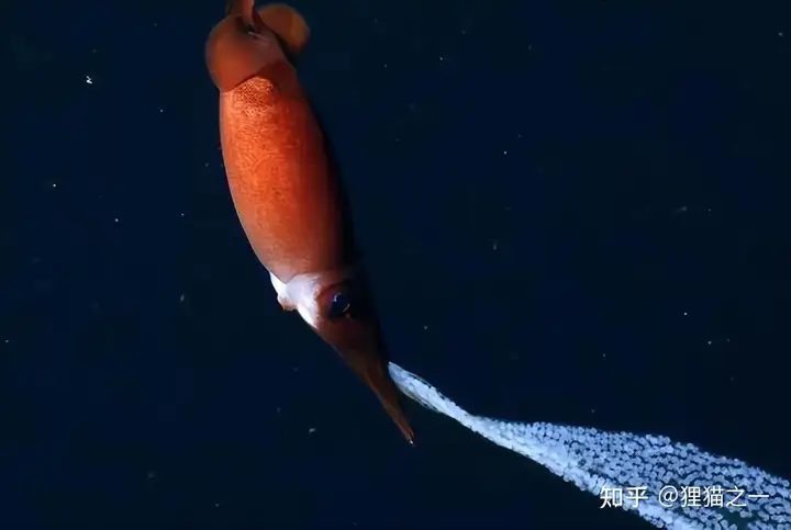 8 E& }5 H; h0 g0 [4 r. K 鱿鱼妈妈一般将卵产在海底后就会离开,留下卵自求多福,因为在危机四伏的深海带崽实在是风险巨大。这就是为什么拍到鱿鱼带崽很难得了。