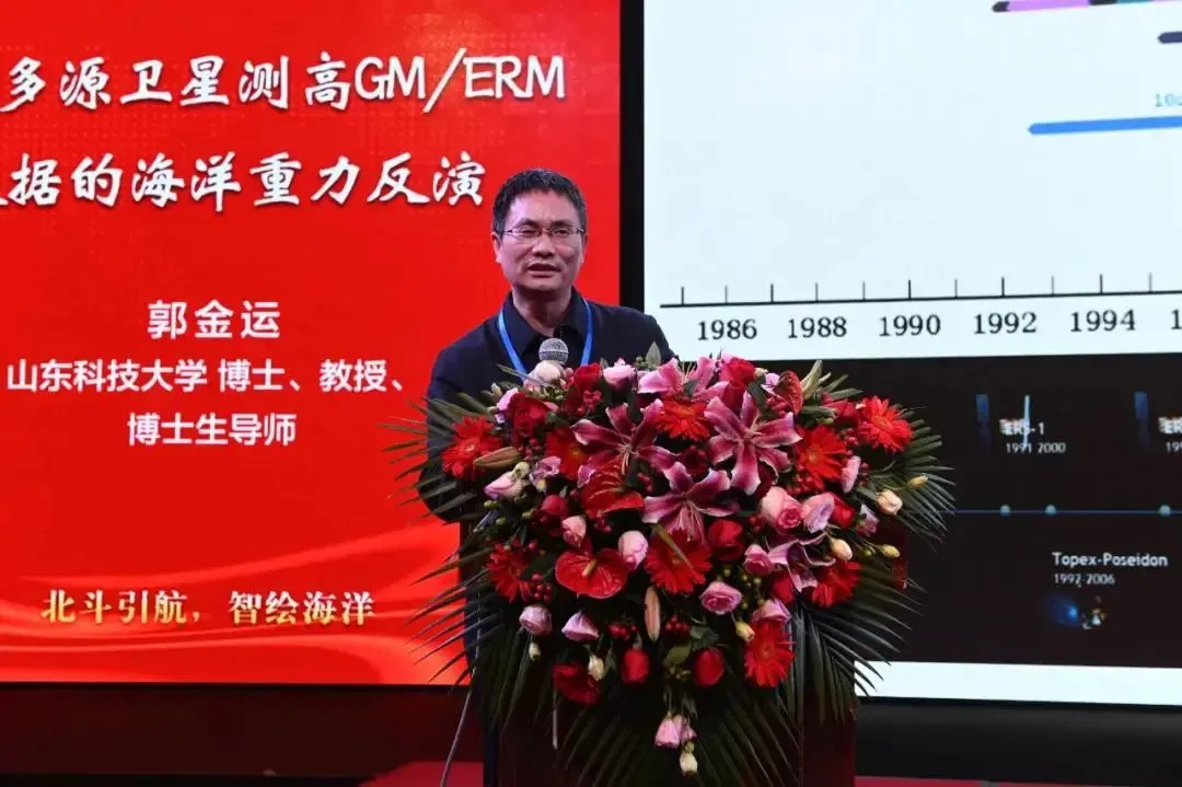 山东科技大学博士生导师郭金运教授作题为《集成多源卫星测高GM/ERM 数据的海洋重力反演》的主旨报告,他介绍了多源卫星雷达测高GM/ERM数据的集成处理,利用ERM高精度控制和改善GM数据;并提出精度估计的经验公式,在LSC计算中合理定权,对Ku和Ka波段测高数据采用不同精度评定方法;并且利用LSC+IVM方法,解算了全球海洋重力异常数据,实现了单一任务和联合任务进行重力反演。 + {8 {+ M! Y* h