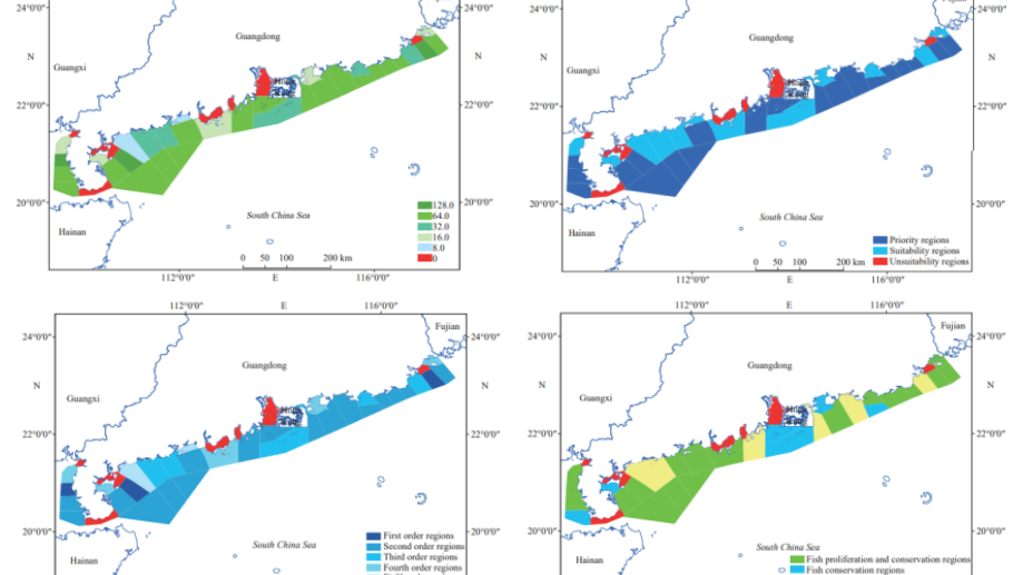 1 ]5 b3 v: p: ]% d+ z, S 图4 广东省海洋牧场选址生态适宜性评价结果