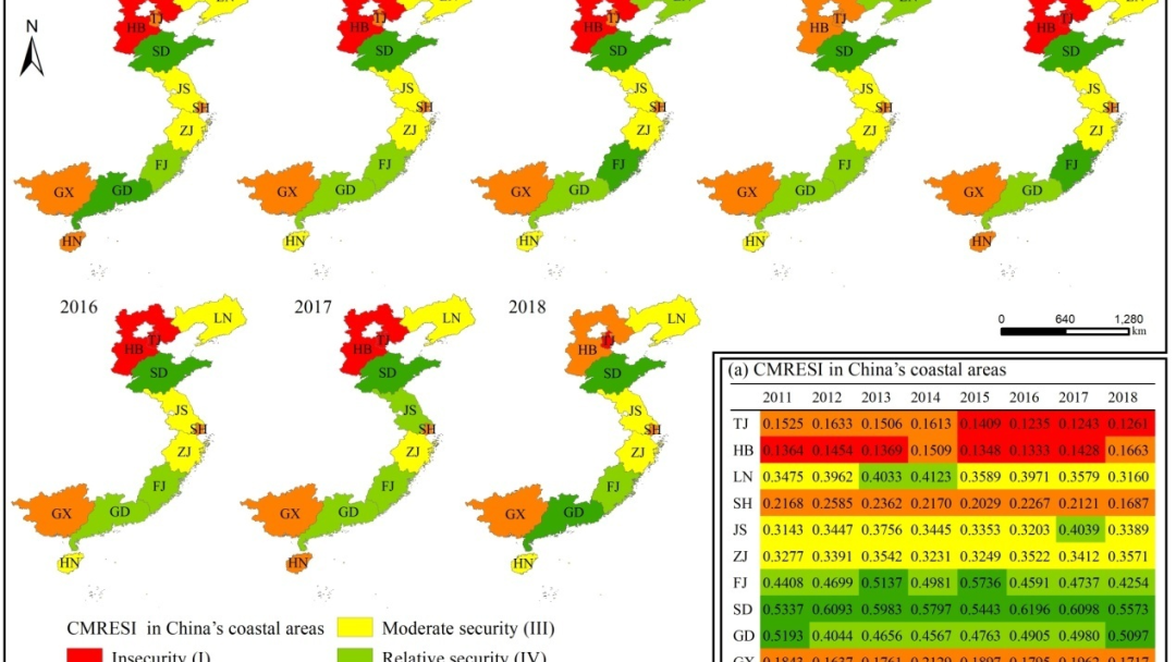 图2 2011-2018年中国海洋牧场生态安全空间格局 - L( R1 z, q, e) |# Z6 X