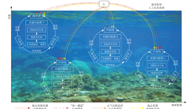 研究团队在系统总结国内外海洋牧场概念演进过程及其实践发展历程的基础上,剖析了现代海洋牧场建设存在生态学理论缺失、生态工程技术缺少、生态管理缺位等问题,并以问题为导向提出海洋牧场人工生态系统理论,海洋牧场渔业资源关键功能群构造及其生境营造原理方法,及包括方案规划设计、生态工程与智能工程建设、生态适应性管理模式在内的海洋牧场人工生态系统构筑基本范式,为我国现代海洋牧场建设探讨生态系统理论体系。 " o+ [7 A+ O8 L/ G