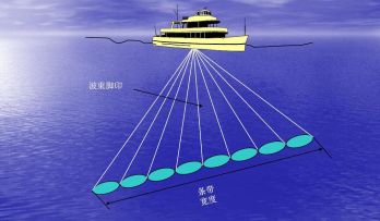 $ m1 `5 g3 U) }1 T; i3 j/ p/ w 多波束测深系统的工作原理是利用发射换能器阵列向海底发射宽扇区覆盖的声波,利用接收换能器阵列对声波进行窄波束接收,通过发射、接收扇区指向的正交性形成对海底地形的照射脚印,对这些脚印进行恰当的处理,一次探测就能给出与航向垂直的垂面内上百个甚至更多的海底被测点的水深值,从而能够精确、快速地测出沿航线一定宽度内水下目标的大小、形状和高低变化,比较可靠地描绘出海底地形的三维特征。多波束测深系统海洋测绘如图1所示。 5 d# Y) A) L8 h% m