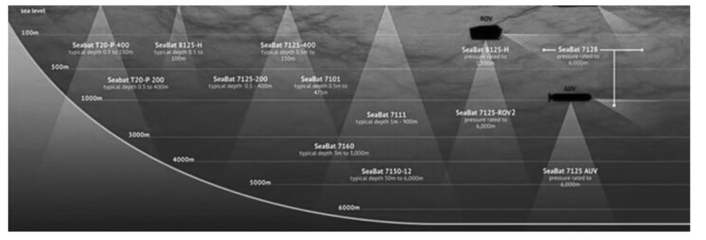 400kHz声纳传感器可同时采集512个水深信号;最大发射开口角度为165°;ping速率为50Hz(±1Hz)。因此,它对水下地形的测量是在一个完整的覆盖范围内进行的,它测量的水下地形是一个面。多波束探测系统由四部分组成:基本系统,辅助设备,数据实时采集和处理系统PDS200 以及数据后处理软件包。针对某海洋上游航道的束测深仪制造商对海上游航道的适用性进行了现场演示测试。多波束探测系统的工作原理是利用水下声纳单元发射和接收脉冲声波。声波被河床或水下物体反射,有些被探头接收。水深可以从声波在水中传播的时间和声速来计算。该系统由高分辨率声纳系统,声速探测器,水下声纳传感器和完整的数据采集软件包PDS2000组成。