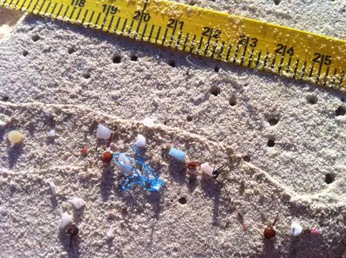 这些微小塑料,在海洋中,既可以释放有毒物质,也可以吸附其他有毒物质,如PCBs和阻燃剂等,最终还有可能被海洋生物所摄食。 $ e0 Q: y3 ]/ D( V- r0 N5 w/ o z