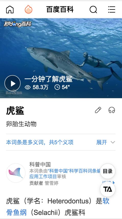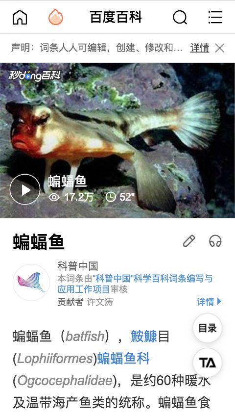 的百科页面——秒懂百科视频,视频截图上赫然写着“鹦嘴鱼科”。 - b' A/ h: p8 e8 G3 s) U