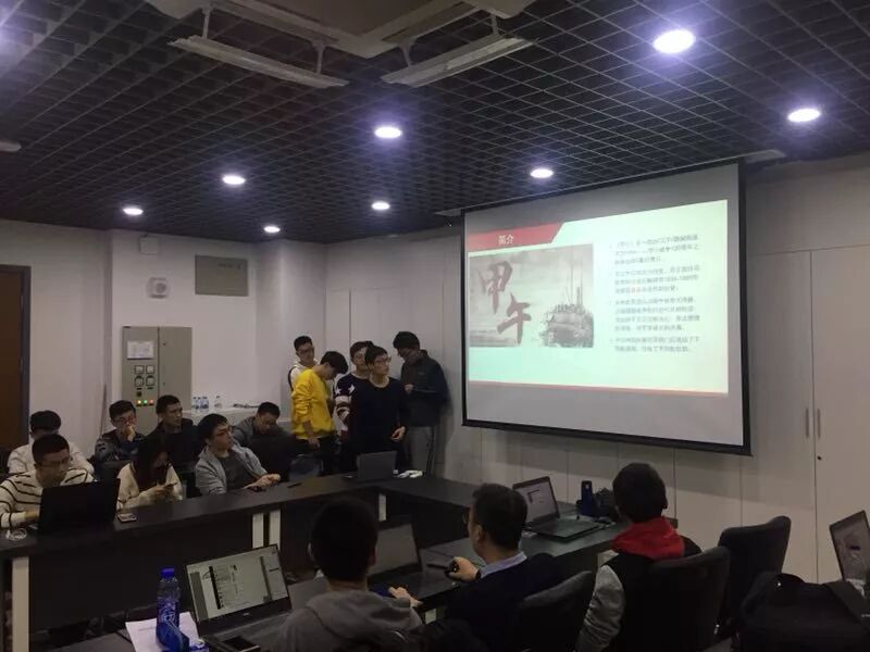 (图为支部进行《甲午》观后分享会) 6 v3 P" D H/ y3 d' S