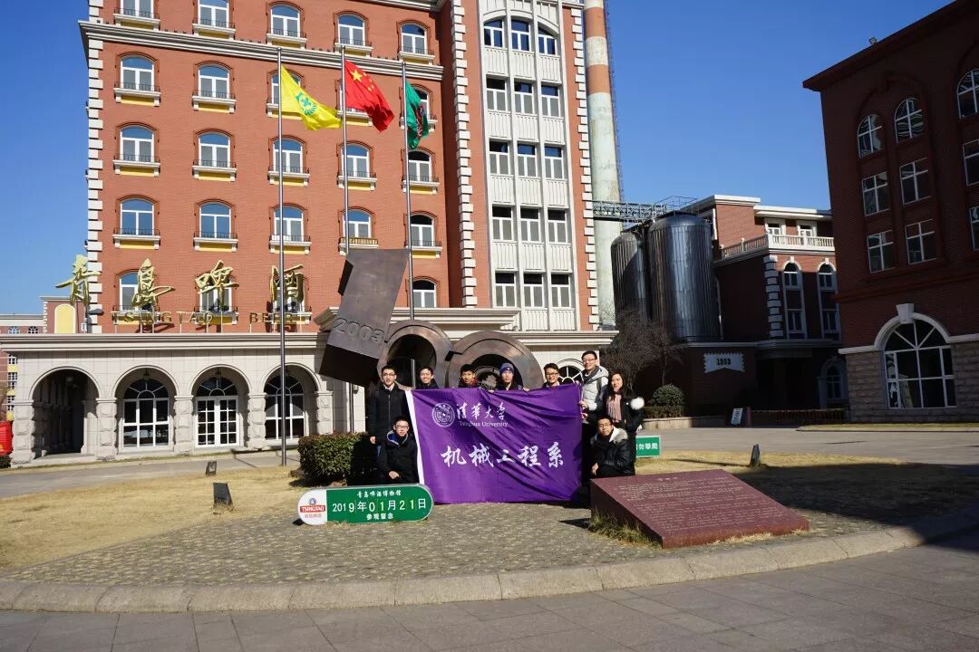 (图为实践支队在青岛啤酒博物馆合影) - J- m: X& L* e, v5 m# l