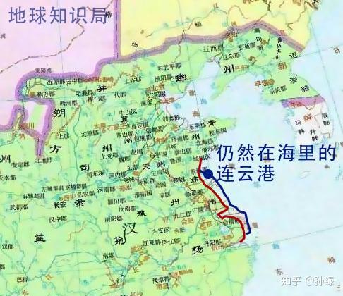 3 t1 E& [, K# P+ s) ^ 西汉历史地图,当时的连云港还在海里,