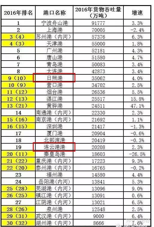 8 J# x$ ~" w5 R- C, a$ }& e8 ^$ k! U 黄色为排名发生变化的港口