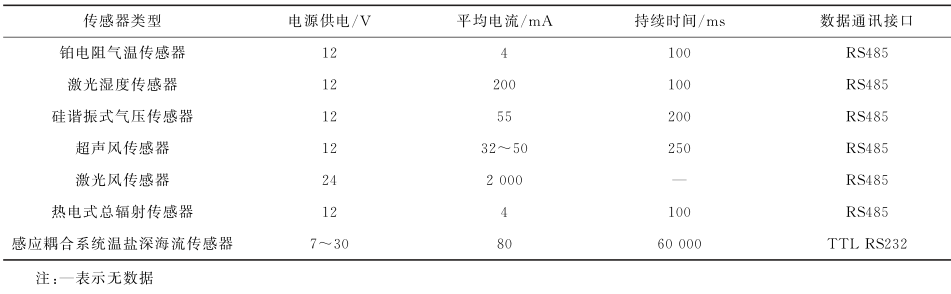 表1 浮标平台传感器电气特性 : k1 t8 b, u- e* V) `