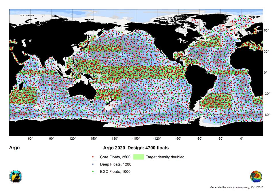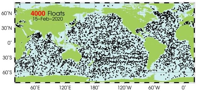 / [: l; n1 x. _ Argo2020计划中“探海浮标”数量(4700个)及其分布 9 ?% ~3 k: |) J7 H# o