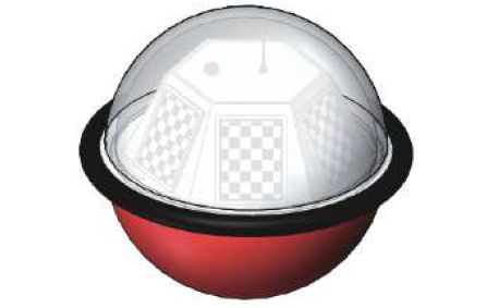 * Y8 S* P$ y7 N 水面浮台工作于水面,在水面的稳定十分重要。考虑到水面浮台受到的浮力必须满足载体自身重量与供电系统重量。并且还要考虑到波浪的干扰,需要提高浮台的随波性。水面浮台外形结构最终决定设计成直径为800mm的圆球形状。平台主体采用碳纤维和玻璃纤维复合制成,相比于传统的浮塔采用的金属材料,具有重量轻、抗腐蚀能力强、随波性好等特点。图2为水面浮台三维结构。 - U1 e2 \+ J' j7 _