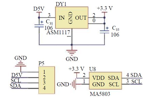 - q$ t# Z+ w: X1 V) {. @ 图13 MS5803传感器连接电路 $ n3 E5 y Y k7 H9 A$ V