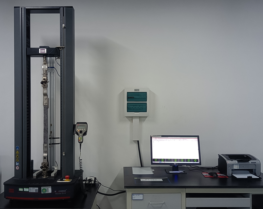 , M8 {) X* b" w$ \8 e 抗拉强度测试用的设备为高精度(0.5级)的微机控制电子万能材料试验机。本次试验考核石墨接地体的抗张强度,即在恒定外力500N作用下保持10s,接地体是否发生断裂或破损。 / t0 L, |( w2 V: B" i% G* e' f5 W