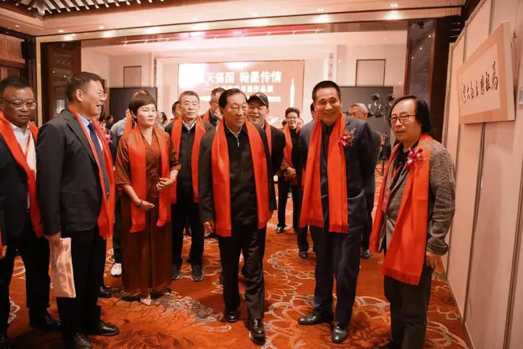 参加本次活动的领导及嘉宾有:第十二届全国政协副主席齐续春,第十二届全国政协常委、原国家新闻出版总署署长龙新民,浙江省政协副主席陈擎苍,浙江省政协常委、副秘书长、民革浙江省委会专职副主委刘净非,中华民族和平统一促进会主席、中联国兴书画院院长华国中,中联国兴书画院执行院长徐磊,中国关工委办公室主任陈江旗,中国关工委事业发展中心主任郎亚龙,荣宝斋画院院长、中国美术家协会理事唐辉,北京市文联原党组书记、常务副主席、中国美术家协会第七届理事朱明德,中国人民对外友好协会全国理事、中国友好和平发展基金会原秘书长王合善,北京市公安局治安总队原副总队长唐云利,中联国兴书画院副院长兼艺术团团长宋伯军,中联国兴书画院副院长李维祥,中国美术家协会会员、齐白石艺术研究会会长刘仲文,中国美术家协会会员、北京外国语大学书画协会会长、副教授杜征麟,中联国兴书画院副院长、中华竹叶书创始人吴明,中联国兴书画院副秘书长王转思,中联国兴书画院创作部部长、海南省民族美术家协会副主席程慧君,资深媒体人杨勇。