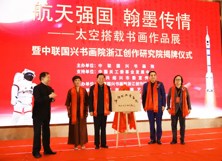 原标题:太空搭载书画作品展暨中联国兴浙江创作研究院揭牌仪式举办. b* q# ?5 k3 X7 l- y' X