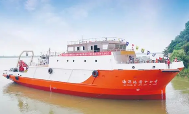 ) K6 l8 B1 K6 I! n0 N 7月1日,中国地质调查局烟台海岸带地质调查中心首艘海岸带综合地质调查船“海洋地质十七号”在江西九江同方江新造船厂码头下水。“海洋地质十七号”总长49.5米、型宽12.0米、设计吃水2.65米,以近海海岸带综合地质调查为主,具备钻探、物探等多门类作业功能。该船配有高精度导航定位和动力定位系统、海洋地质钻探系统、浅水浅剖系统、可视化柱状取样器、CPT静力触探等海洋地质取样测试系统,以及单波束测深仪、浅水多波束、海洋重力仪、三维侧扫声呐等地球物理调查装备。该船设计优化、设备先进,具有良好的稳定性、适航性和操作性,满足多学科、多功能海岸带综合地质调查的核心用途需要。