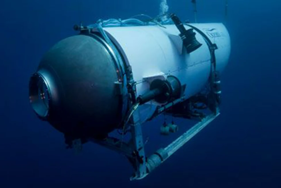 “泰坦”号深海潜水器资料图。来源/美联社 4 {9 s' G* P1 [6 f% e* B7 D