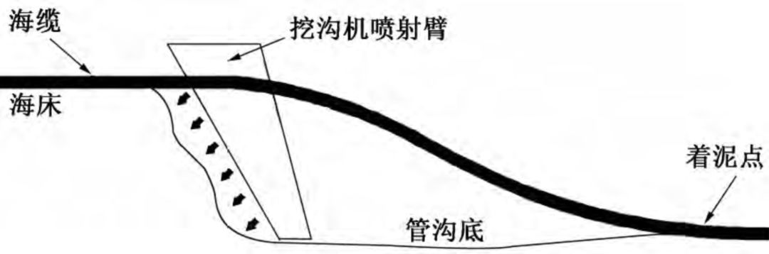 在挖沟行进过程中,海缆从未扰动的海床至沟底着泥点间,必然存在一段悬空段,如图2所示。