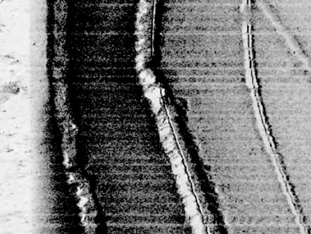 作业船舶搭载探测设备沿着设计测线对海缆路由附近区域进行调查,完成数据采集后由专门的工程师进行处理和汇编。最终海缆的埋设/裸露状态、埋设深度、管沟深度、电缆位置、地貌信息、水深信息等均可以以表格或图片的形式详实地反映在后调查报告中。这是目前获得信息最为直观完整、应用范围最广的一种管缆埋设后调查方法,图4为侧扫声呐探测到的管沟及海缆。