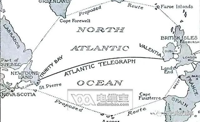 这条电缆,是当时的一位美国商人塞勒斯·韦斯特·菲尔德投资铺设的。电缆的铺设并不顺利,第一次铺设,300多海里长的电缆在海面上消失的无影无踪,第二次尝试,铺设的第四天遇到了狂风暴雨,白白扔掉了200海里长的电缆。第三次,没有媒体报道,没有名流到场,船队悄悄的再次起航,阿伽门农和尼亚加拉两艘 拖船 终于在大西洋中部成功接头,两艘船上的各一半电缆对接在一起,阿伽门农号驶向英国,尼亚加拉号驶向美国,而这一次的尝试终于成功。1858年8月16日,维多利亚女王发给美国总统 布坎南 的贺电通过海底电缆传到北美,布坎南总统向女王回电,此时礼炮鸣放100响,庆祝人类历史上这个伟大的时刻。 + t7 O9 M x7 v* Q& B