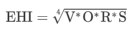 ' y3 ^" {# u9 e+ I 健康的生态系统具有完整的结构和功能特性,可以为人类提供生态服务。一般来说,它可以分为三个部分:活力,组织结构和弹性。然而,缺乏生态系统服务和管理将导致生态承载能力下降,从而降低健康水平。因此,参考以前的研究,我们构建了一个评估生态系统健康状况的新框架,包括 4 个部分:活力、组织、复原力和服务。生态系统健康指数(EHI)表示为: . v+ x- u, J$ @2 O2 E* K