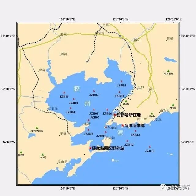 ' t J* ] Q4 Y4 `. f5 [; o2 x; D  胶州湾长期观测站位布局图2 E+ a$ Q$ q- l* r- \6 K