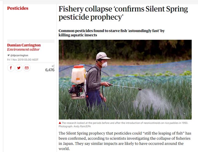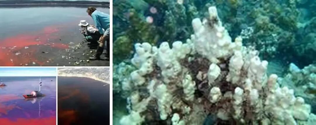 不同污染对海洋生物的影响 1. 富营养化自 20世纪80年代起,全球层面由富营养化导致的湖水浮游植物爆发频频发生,威胁到人类、牲畜、以及栖息地的水生动物的水供应。营养物质如氮和磷的富集会导致毒藻的爆发,淡水中是蓝藻和绿藻,也会出现细丝状的大型藻类增殖;海洋中则是赤潮,导致贝类瘫痪,海草被藻类包围,珊瑚白化。 图:丝状的大型藻类增殖 左图:赤潮;右图:珊瑚白化富营养化最严重的后果是那一片区域变成无氧死区。自1950年至今,全球海洋死区面积翻了两番,近海死区的数量增加了 10 倍。 图:颜色越红,水体中氧含量越低2. 沉积物污染陆地上流失的水土随着河流进入海洋后,会让红树林窒息,减少它们捕获营养和沉积物的能力,并减弱了它们保护沿海的功能;引发水体浑浊,从而使得海藻、海草和珊瑚所需的光线减弱,让海贝床窒息,占据重要的深水鱼栖息地的空间;小鱼也会错把沉积物颗粒当食物,导致小鱼存活率降低,鱼的数量减少。 图:沉积物使水体浑浊除了陆地上源源不断输入的沉积物,海上的一些作业比如清淤工程还会让已有的沉积物污染再悬浮,沉积物中的污染物(金属,烃类,营养物质,酸)再次进入水体。 图:澳大利亚格莱斯顿湾清淤工程下面这张图中的海龟,可能由于食用了受再悬浮污染物污染的海草,而处于濒死状态。 图:濒死的海龟再悬浮污染还可能导致海鲜中的无机砷超标,鱼苗的成活率下降,影响鱼的甲状腺功能,对硅藻(水生食物网底部的藻类)和桡足类(浮游动物)产生毒性作用。3. 农药1960-1999年,全球的农药(除草剂、杀虫剂、杀菌剂等)的产值均逐年增加。2009年,全球农药支出达 5.6 万亿欧元(Hartung2009)。 图:全球1960-1999农药销量2019年11月1日,《卫报》刊载了一篇名为《渔业崩溃证实了<寂静的春天>杀虫剂预言》(Fishery collapse‘confirms Silent Spring pesticide prophecy’)的文章,讲述了常见的杀虫剂让水生昆虫大量死亡,导致鱼类无食可吃都饿死了的现状。 图:《卫报》报道除草剂被认为是导致澳大利亚东北部麦凯地区(Mackay)严重红树林枯死的原因。 图:Mackay 红树林退化红树林对地球的健康至关重要,储存的碳是热带森林的 3-5 倍,能捕获氮和沉积物,为近岸礁净化水,鱼类、虾类、贝类、鸟类、海龟等生物多样性丰富的场所,为水生生物提供食物和住所,保护海岸免受侵蚀和风暴潮。然而红树林消失的速度是森林的 3-5 倍,气候变化导致的高盐度和高温风险也在威胁着红树林的存活。2016年,大卫·爱登堡说过“处于严重危机中的大堡礁”。珊瑚在压力下会白化,而除草剂会增加珊瑚对上升的海平面温度的脆弱性,降低其白化后的复原能力。 左图:珊瑚;右图:白化的珊瑚炸银鱼曾经是新西兰非常普遍的一种小吃。然而由于毒物暴露导致银鱼复原能力丧失,被寄生虫感染后难以恢复,从而导致银鱼种群数量越来越少。 图:银鱼下方左图是一个被夏威夷果园包围的渔场的照片,右图是果园在喷洒农药。 果园喷洒的农药漂移到了渔场,对鱼造成了非常大的影响,出现了鱼苗脊椎弯曲,澳大利亚鲈鱼胚胎长出 2 个头的现象。 左图:鱼苗脊椎弯曲;右图:2 个头的鲈鱼胚胎(图源:G Gilson)那为何会认为果园的农药导致了渔场的鱼的畸形呢?因为夏威夷果园附近有蜜蜂死亡,其时间和和夏威夷果园喷洒农药的时间一致。 图:死亡的蜜蜂敌敌畏可能导致斑马鱼心脏水肿和脊椎弯曲。 上图:斑马鱼心脏水肿;下图:斑马鱼脊椎弯曲4. 内分泌干扰物很多化学物质并未完全从污水中过滤掉,比如避孕药、全氟化物、农药、清洁剂和表面活性剂等。它们会对受暴露的鱼的内分泌系统造成同样的影响。 图:漫画双性鱼下图中的斑马鱼不吃垃圾食品,也不玩电子游戏,却很胖,其原因是持久性有机污染物。 图:发胖的斑马鱼2007年,加拿大在一个湖泊做了一个实验,以万亿分之五的浓度向该湖中投入合成雌激素(EE2),结果鱼类性别改变,数量锐减,种群崩溃;快速繁殖的短寿命鱼类首先灭绝。经过好几年的时间,湖泊的生态系统才恢复。 5. 塑料生活中塑料无处不在,我们的习惯又是“用完即弃”。然而,这些塑料是丢不掉的,它们或是进入填埋场,或是进入海洋,或是进入生物体内。 图:鸟儿吃进去的塑料 % O$ ]5 ^0 w; @# B! ^3 J8 t; j* G