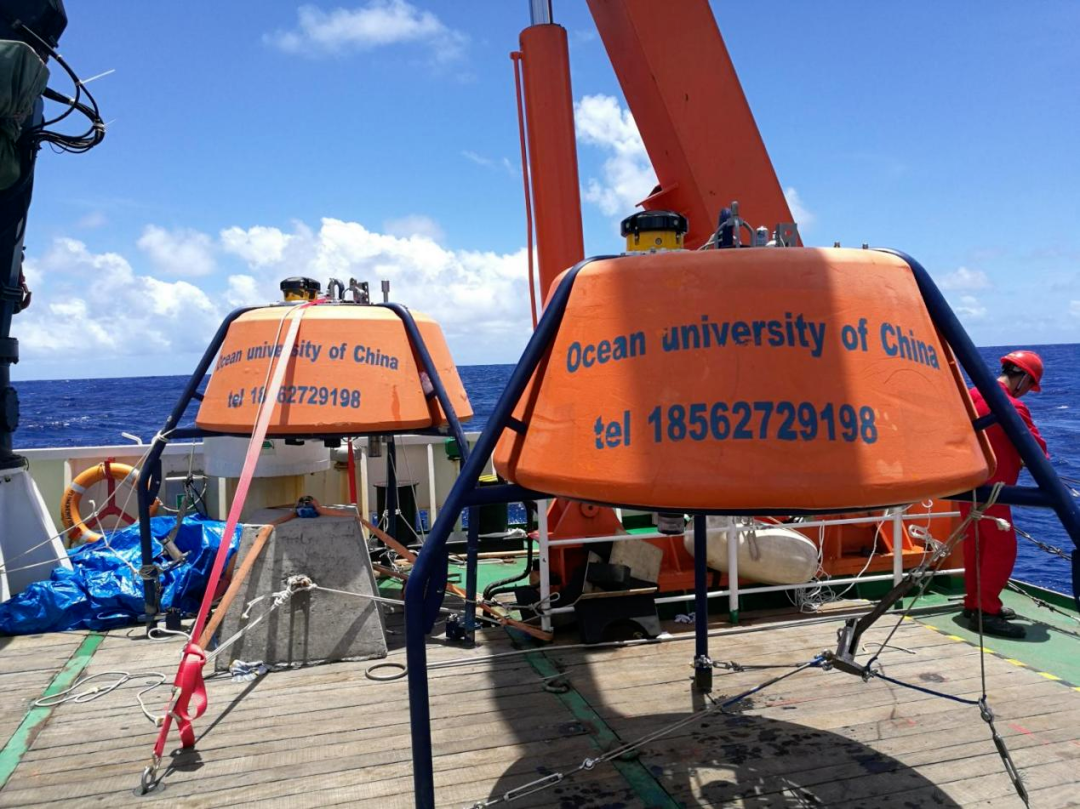 2020年,青岛深远海自行设计研发的表面漂流浮标交付自然资源部海洋一所,在我国南海工作时长超过18个月。浮标由水帆、水上浮球和连接缆绳构成,水上浮球安装有通讯设备(ARGOS、铱星等)、天线、电池和传感器,可实时获取温度、盐度等水文要素数据,同时通过拉格朗日法测量海表层流速和跟踪海流走向,并由此分析观测海域海流及水体表层温盐特征。该项目为21世纪“海上丝绸之路”的相关项目的重要组成部分。 1 e. N' W1 o4 T- M' m* g; e