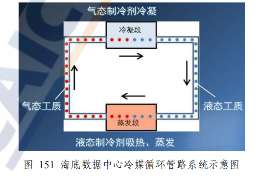 ( E: g9 d) G+ _ i( g8 _" j% { 作为全新的系统解决方案,海底数据中心通过技术创新、方案创新、应用创新,促进了海洋领域与数据中心关键核心技术新突破。海底数据中心采用创新的海水无动力散热技术,实现低能耗制冷,有效解决现有数据中心高能耗问题。整个散热设计无动力驱动,将热管原理应用在水下数据舱,利用管路的高度差创造重力条件,冷媒把舱内的高温带出来通过冷凝器和海水进行热交换,靠舱内设备导致的温升和海水之间的温差驱动冷媒循环散热。 + C4 J, f( C# U# T1 @3 R) @