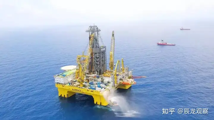 蓝鲸平台海上资源往往都隐藏在数百米乃至数千米深的海底,而在茫茫大海上显然没法建设和陆地上一样的石油开采设施,因此要对海底的石油和天然气等资源进行开采就必须建设能够抵抗海上环境的海上作业平台,蓝鲸2号就是这样的一座平台,这是全世界范围内最为先进的超深水双钻塔半潜式钻井平台,不仅能够在数千米深的海底进行资源勘探,还做到了各项性能世界第一的水平。
