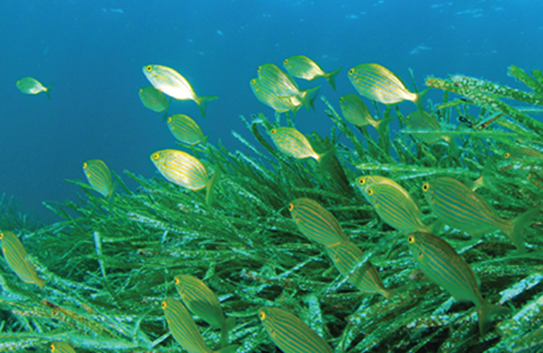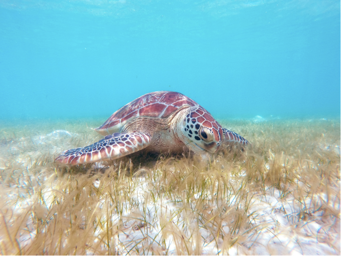 海草生态系统对儒艮(Dugong,Dugong dugon)、海龟(marine turtle,Chelonia spp.)和鲨鱼(Shark,Selachimorpha)等许多洄游物种至关重要,也是世界渔业生产的基础,为许多渔场提供了宝贵的育苗生境。海草可以通过过滤、循环和储存营养物质和污染物来改善水质,并可以减少海洋致病细菌的发病率,这不仅可以直接保护人类,还可以减少珊瑚疾病和海产品污染。