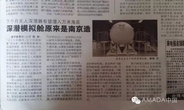 “可上九天揽月,可下五洋捉鳖”原本是一种诗意的豪情与浪漫的理想,而当今科技的发展与实践却让这些天马行空的想象奇迹般地照进了现实。下个月我国的万米级无人深潜器和着陆器将有望进行11000米的深海测试,而扬子晚报记者昨天了解到,深潜器的模拟舱已于近日从南京发出,而生产者就是曾经为神舟飞船解决焊接难题的工程师王建银。