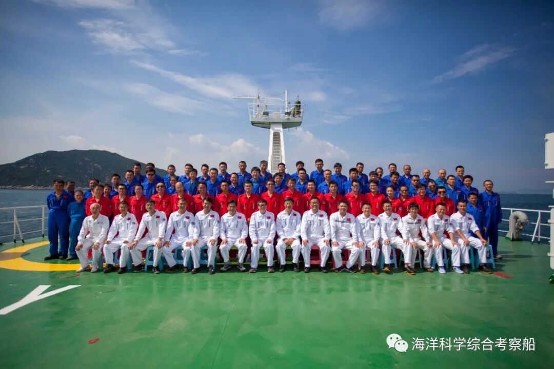 ( }$ P/ B7 F, M; K' @4 g3 J. p/ z 南海综合调查航次合影(首排左七为首席科学家孙松)  % G+ f/ O6 O7 V4 O& u