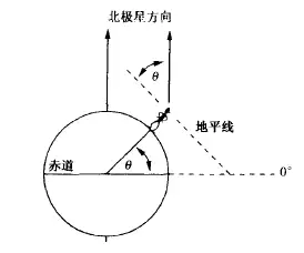 ; z& q- L- t' l8 Z: D3 G 也就是说,如果你去视野中找北极星,发现它在你的头顶正上方,也就是仰角为90度,那说明你所在的纬度就是90度,你正踩在北极点上。如果你去视野中找北极星,发现它在地平线处,仰角为0,说明你所在的纬度就是0度,你正在赤道上航行。如果仰角为30度,说明你现在的位置是北纬30度。
