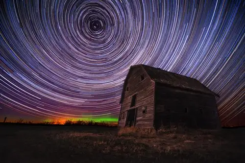 4 \4 X, M: z3 q; g 这是一张北半球星空的延时曝光照片,斗转星移,因为地球的自转,恒星在天空中的轨迹构成了一个又一个的同心圆。我们注意到,圆心的那颗恒星在这个视野里是不会动的,因为它位于地轴的延长线上。这颗恒星叫做北极星。对于北半球的观察者来说,北极星始终不动,其它恒星围绕北极星旋转。