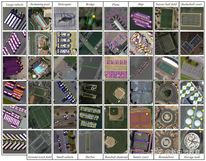 ; H+ b3 ^% z2 ^8 t DOTA数据集样本预览(图源:网络)从深度学习角度来看,遥感数据还存在以下几个问题: 5 _1 K. ]# O- }