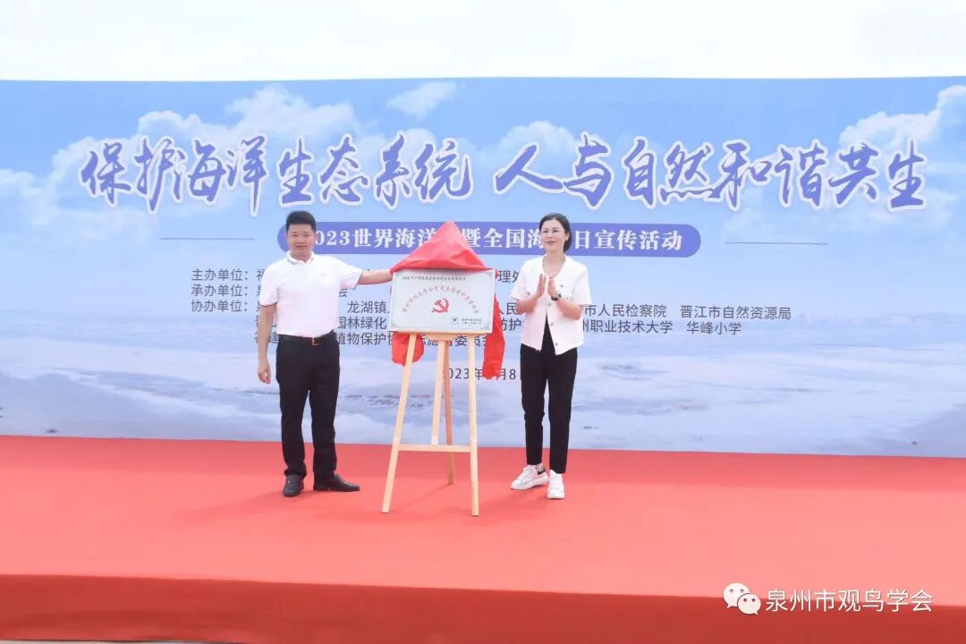 泉州市观鸟学会第三个党员志愿者科普宣讲岗于福建深沪湾海底古森林遗迹自然保护区正式设立。现场举行了设岗仪式,由深沪湾海底古森林遗迹自然保护区管理处副主任吴艺敏、晋江市自然资源局二级主任科员何团祖共同为科普宣讲岗揭牌。