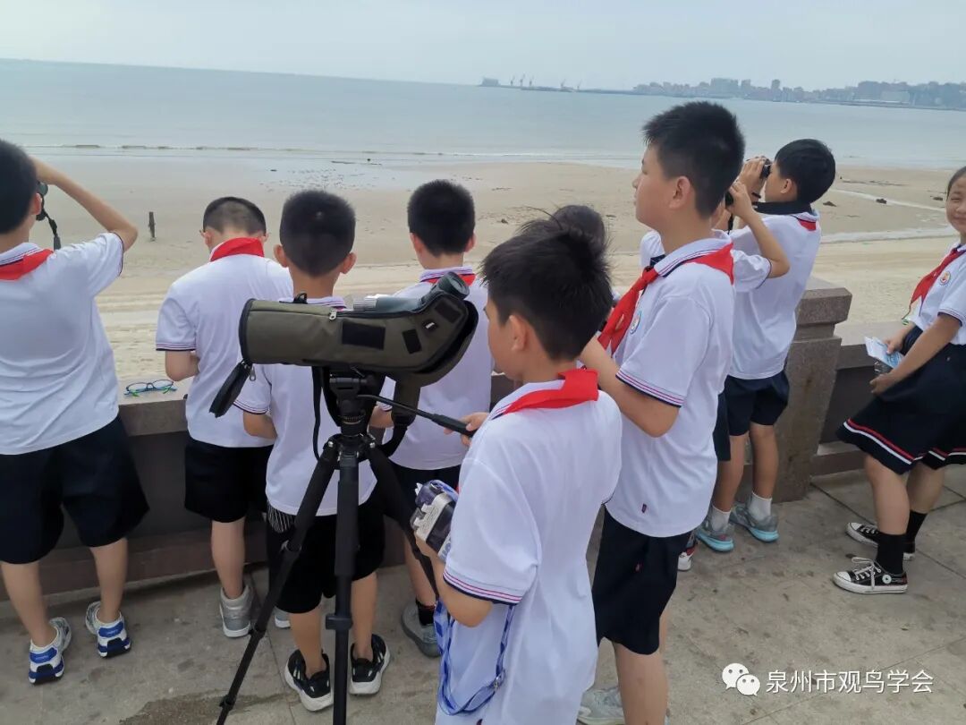 在10位学会科普老师与志愿者的指导下,百名华峰小学学生参与“保护海洋生态系统鸟类认知研学”研学观察活动。同学们学习使用单、双筒望远镜和长焦镜头摄像机,亲眼观察并认识深沪湾海滩上的动植物和鸟类,深入感受了海洋科学的魅力。