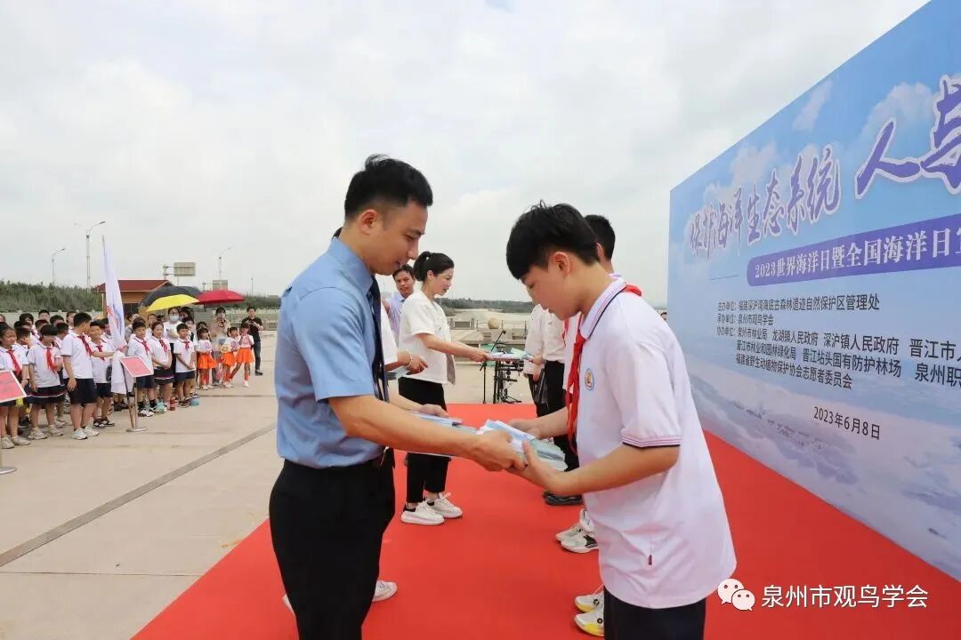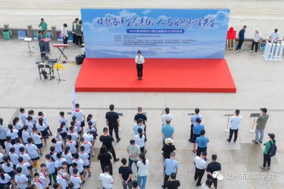为贯彻习近平生态文明思想、提升全民海洋意识和人与自然和谐共生理念,6月8日上午,由福建深沪湾海底古森林遗迹自然保护区管理处主办,泉州市观鸟学会承办,泉州市林业局、龙湖镇人民政府、深沪镇人民政府、晋江市人民检察院、晋江市自然资源局、晋江市林业和园林绿化局、晋江坫头国有防护林场、华峰小学、泉州职业技术大学及福建省野生动植物保护协会志愿者委员会共同协办的海洋宣传日宣传活动在深沪湾海底古森林遗迹自然保护区拉开帷幕。