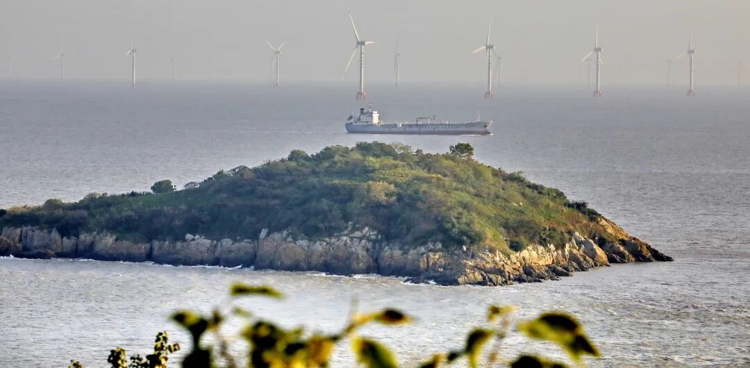 油轮从浮山岛旁驶过