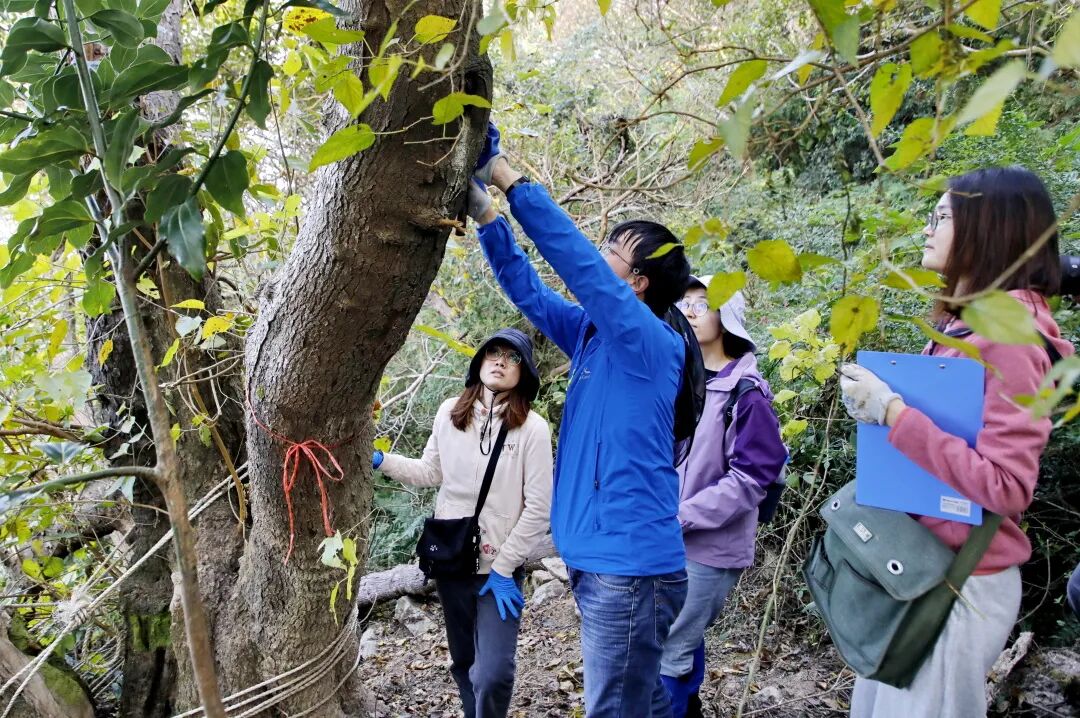! E ?) E2 ]+ Y- c8 x! o( f, q 科考人员监测鸡桑树