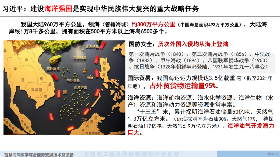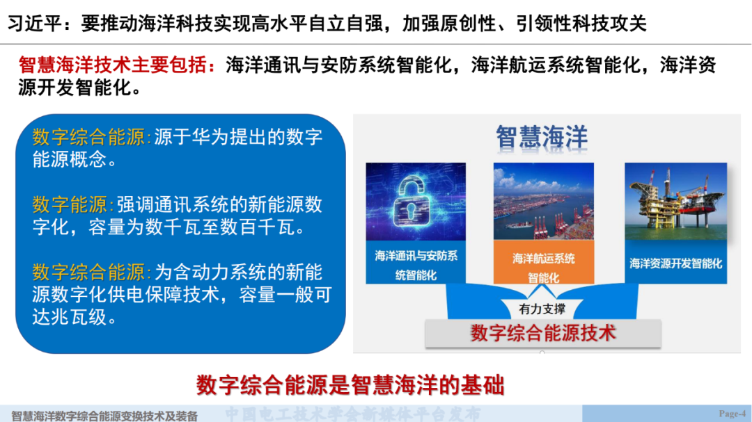 智慧海洋技术主要包括:海洋通讯与安防系统智能化,海洋航运系统智能化,海洋资源开发智能化。数字综合能源是智慧海洋的基础。