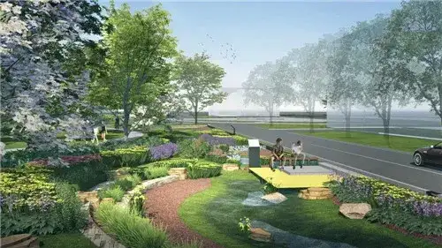 8 r) g8 X6 W6 M, b8 N5 J4 n9 B+ N 迁安行政办公中心片区占地14.9公顷,包含行政办公中心、燕钢研发中心、锦江饭店在内。通过在周边区域打造带状雨水花园和布置排水管线的方式,对雨水进行了良好的控制。