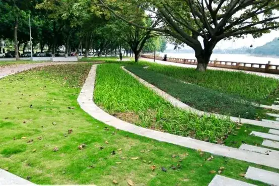 : m# e9 x) g/ C# J 广州的经验经受了实践的检验。阅江路碧道建成之际,就经受住了一年一度的“龙舟水”连续暴雨的考验。因为草沟全面代替了传统的排水沟渠,收集、净化、下渗雨水,多余的雨水再沿着草沟汇流至绿地低洼处的雨水花园存蓄下渗,补充地下水的同时还为绿植提供了充沛的水分。全新的海绵系统实现了“大雨不积水,小雨不湿鞋”的设计目标。 9 b" a; V, C& U3 T& h$ x1 U/ o8 ^